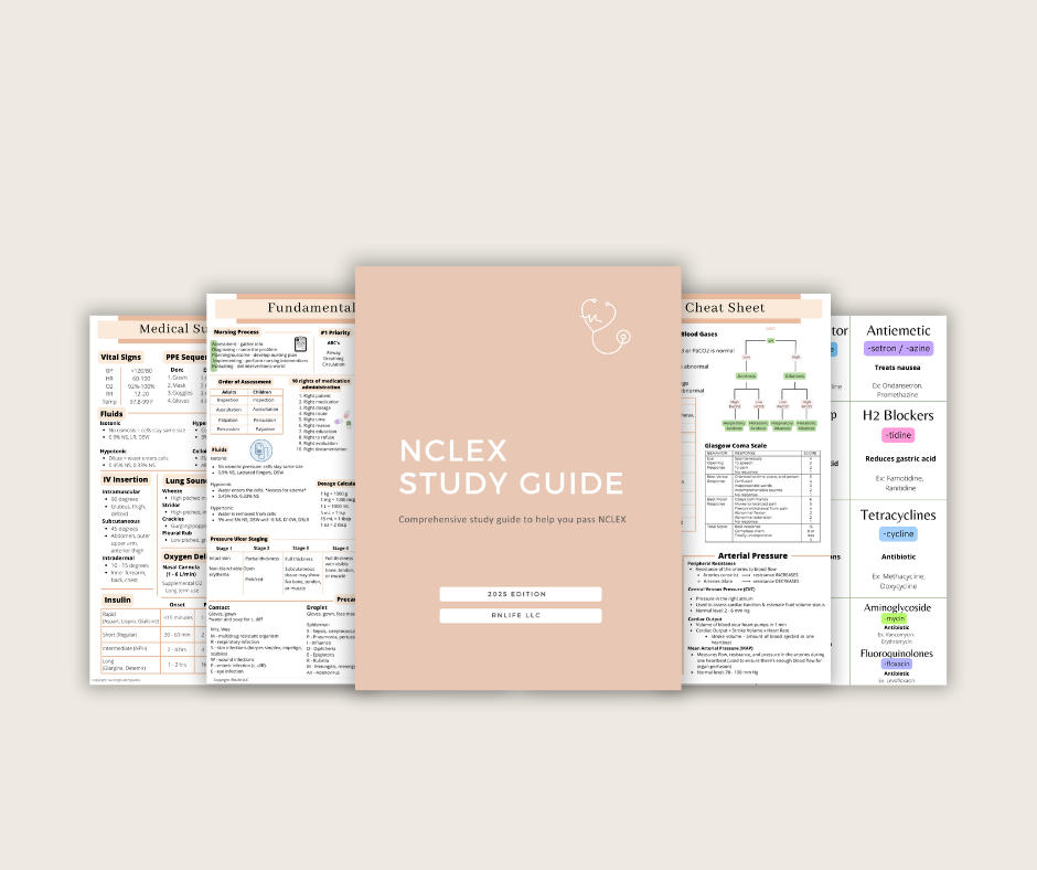 Not sure of what to study for NCLEX? Are you tired of having all your NCLEX information in notebooks, binders, textbooks, etc? This 67 page study guide is packed with key concepts + tips you need to know to pass.